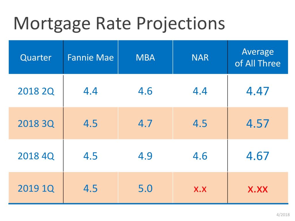 We are also posting a chart predicting the mortgage rates by quarter for 2018. The sources are the Fannie Mae, the Mortgage Bankers Association (MBA), and the National Association of Realtors (NAR). While they each are predicting increased rates, they all are predicting rates to remain below 5%.