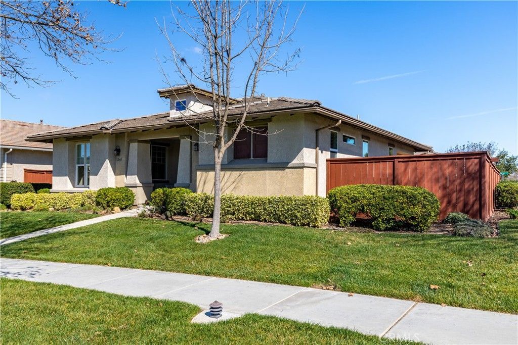 Welcome to this beautifully maintained home located in the highly sought-after Traditions 55+ community. This 1,772-square-foot Legacy Series Prairie Model offers comfort, thoughtful design, and a wonderful setting within the neighborhood. Situated as a desirable end unit, the home enjoys convenient guest parking along Traditions Loop. The front entrance opens directly onto a beautifully manicured greenbelt maintained by the HOA, creating a peaceful and inviting first impression. The finished two-car garage is accessed from Benicia Lane and includes an attached 200+/- square foot hobby room, complete with its own mini-split heating and cooling system, perfect for projects, crafts, or additional workspace. Inside, the spacious floor plan offers flexibility and comfort. The primary suite features an ensuite bathroom and a generous walk-in closet. A convenient half bath is located near the main living area for guests. The home also includes a versatile den, ideal for use as an office, library, or potential third bedroom. Toward the rear of the home, youll find the guest bedroom, full guest bathroom, and laundry room. The kitchen features beautiful engineered-wood flooring, solid-surface countertops, under-cabinet lighting, and a newer stainless-steel oven and microwave combination. A charming breakfast nook provides a lovely window view of the greenbelt. The living room offers warmth and ambiance with a gas fireplace that lights instantly with the flip of a switch. Step outside to a delightful, fenced courtyard, complete with a fountain, brick walkways, and planters filled with roses that are spectacular when in bloom. The covered patio creates the perfect space to relax and enjoy peaceful summer evenings overlooking this charming garden setting. Residents of Traditions enjoy a vibrant lifestyle with access to the community clubhouse amenities, including an Olympic-style swimming pool, spa and BBQ areas, fitness center, library, and meeting rooms, all within the security and privacy of this beautifully maintained gated community.