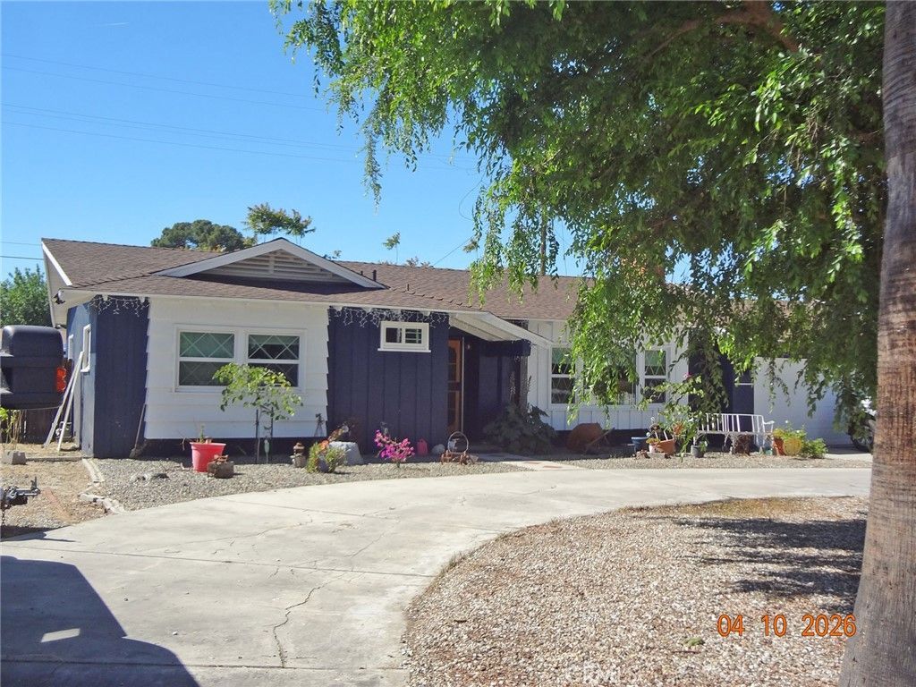 Charming excellently totally refurbished family home in E. Hemet. So much to describe and so well done! Totally perimeter fenced large lot for dogs, RV parking, circular driveway. New paint interior and exterior. The color of the exterior is dark blue walls with white trim. Interior is various pleasing light colors. Both bathrooms have been remodelled and both have walkin showers. The master bedroom suite is at the front of the house and there is a huge additional bedroom added at the back of the house with sitting area and sliding glass doors to it's own patio. There is also a smaller third bedroom. The kitchen has new appliances, dishwasher and gas stove, and granite counter tops. Flooring is all new laminate throughout the house. New windows at the front of the house. New leased solar system with Tesla battery backup system. The lease will be transferred to a buyer. Composition roof is in excellent condition and is approximately 5 to 6 years old. All new plumbing in the interior of the house. Desert landscaping in the frontyard. Auto sprinkler system. Separate approx. 10' X 10' building, as one room, added in the backyard would make a great office, craft room, exercise room or... You just have to see it all!