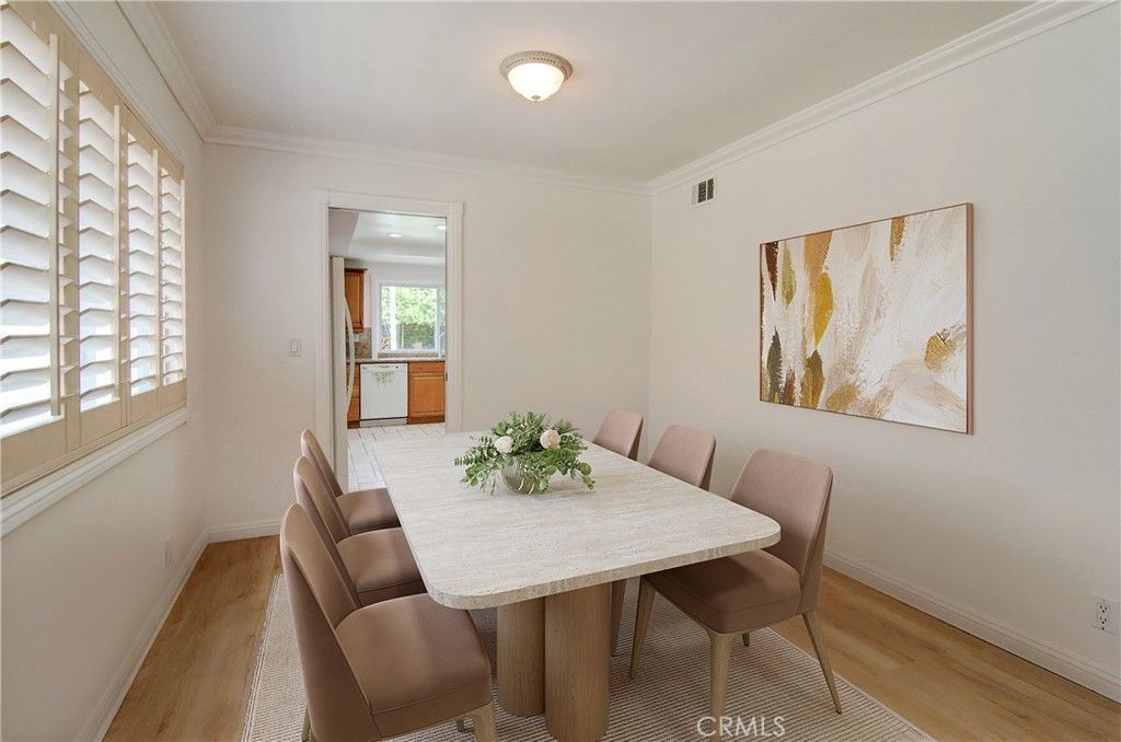 Fantastic purchase opportunity on this 4-bedroom, 2-bathroom single-story Princeton model in the popular College Park East neighborhood of Seal Beach. Fresh interior painting and new Luxury Vinyl Flooring throughout the living area. Outstanding features of this property include great curb appeal, a double-door entry, custom-tiled entry, new LVP flooring in the living room, dining room & bedrooms, crown molding, a fireplace in the living room, vaulted ceilings, plantation shutters throughout, an open and bright kitchen with granite countertops, a full granite backsplash, ample pantry space, and recessed lighting. There is a separate family room with a built-in desk and corner cabinet. The large primary bedroom features a walk-in closet and sliding glass doors to the backyard. The primary bathroom has been updated with a custom tile vanity, shower and flooring. Dual-pane windows and sliding doors are throughout the home and the bedrooms are a nice size. The hallway bathroom includes a dual-sink custom-tiled vanity and tub wall. AC has been recently upgraded in 2023. The laundry room includes a washer and dryer, and the bedrooms have ceiling fans and mirrored closet doors. The verdant and private backyard features mature trees creating an oasis for entertaining, a built-in BBQ, and an outdoor patio area. A 2-car attached garage has extra built-in storage cabinets and the driveway features an attractive flagstone ribbon and low maintenance landscape. This beautiful home is located in the coveted Los Alamitos Unified School district and close to shopping, restaurants, golf courses, beaches, and freeways. Don't miss out!