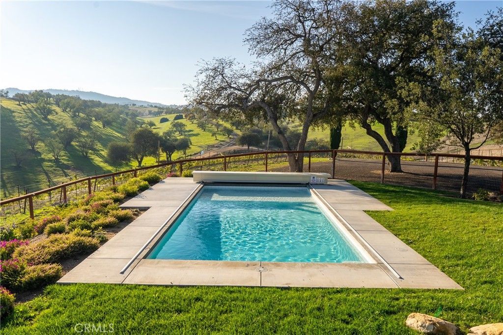 Welcome to a rare wine country retreat minutes from downtown Paso Robles, offering sweeping 360° views, privacy, and income potential. This gated estate features approx 3 acres of Syrah vines, creating a true vineyard setting. The updated 5 bedrooms, 3 bathrooms home blends modern upgrades with relaxed charm, including solar with Tesla backup batteries, multiple water heaters, pool heater, gas fireplace, and Starlink internet. Smart home features provide remote access to security, gate, lighting, thermostat, pool, and utilities. The property also includes two additional ADUs, each with full ensuite bathrooms, offering flexible use for guests or rental income. Outdoor living shines with a heated pool, mature landscaping, and expansive entertaining areas?all fully deer-fenced and secured. Additional highlights: owned solar, private well with filtration/softening, chip-sealed driveway, and 30-amp RV hookup. Ideal as a private lifestyle vineyard estate, luxury getaway, or income-producing investment?wine country living just minutes from town. Currently running as a profitable and very popular short term rental with excellent reviews. Full property management team in place for easy transition to new owner. Owner is a CA licensed real estate broker.
