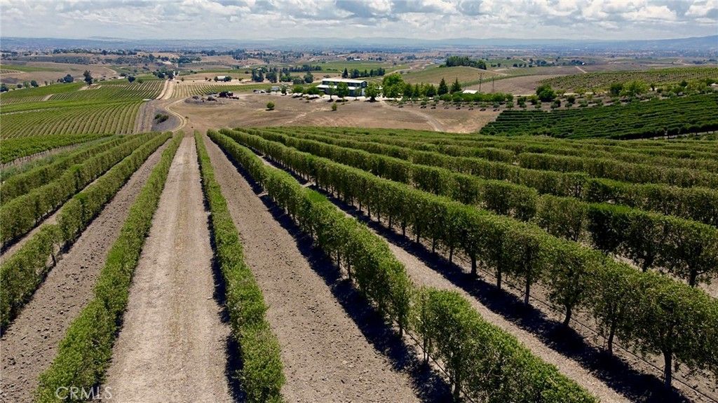 This prestigious and profitable 162.61 acre Olive Ranch and Vineyard is located in the rolling hills of the Paso Robles Estrella Appellation. Specializing in the growing and production of award-winning Extra Virgin Olive Oil and premium wine grapes. The property features a beautiful 4950 sq.ft. two story barn. The lower floor of the barn is equipped with a permitted bathroom, shower, water softener, laundry, and septic system. Heavy concrete paving surrounds the entire barn. Just off from the barn is a stunning open concept entertainment center with fountain, water misters for warm days and a beautiful fireplace for cool evenings. The shooting range located on the other side of the barn has a 10X10 concrete shooting stand, aiming out to movable short and long range targets. The property agricultural mainstay of the property is its 87 acres of vineyards (Cabernet Sauvignon, Sauvignon Blanc, Petite Sirah, Malbec, Petite Verdot, Sangiovese) and 15+ acres of Olive trees (Arbequina, Koronieki and Mixed Tuscan). The Vineyards have profitable leases, ending in 2028 and 2047. There is a 1 acre lavender field and another 18.8 acres of additional olive tree or vineyard expansion. Five 10,000-gallon water storage tanks co-located in a hill-top tank farm with electronic controls and water level indicators. The Irrigation system is gravity fed from tanks throughout the olive blocks and eastern part of the vineyard. The water is supplied by 2 permitted and vested wells. The wells are 650 deep and produce 70-100GPM with no water table issues. Water quality is excellent and water pressure is 35-50psi throughout. Forever views Gazebo: 16ft. diameter, octagon, Amish style shade gazebo on heavy elevated concrete slab with electric fan and lights and views. The Bergey 10 Kw Wind Turbine Generator mounted on a 100 ft. tall heavy duty, galvanized steel tower structure also supports a wi-fi repeater station that is leased, providing free high power internet and wi-fi service to the property. This stunning property has numerous possibilities for the building of a primary Residence. Truly a special place that makes beauty, prestige and profitability a reality.