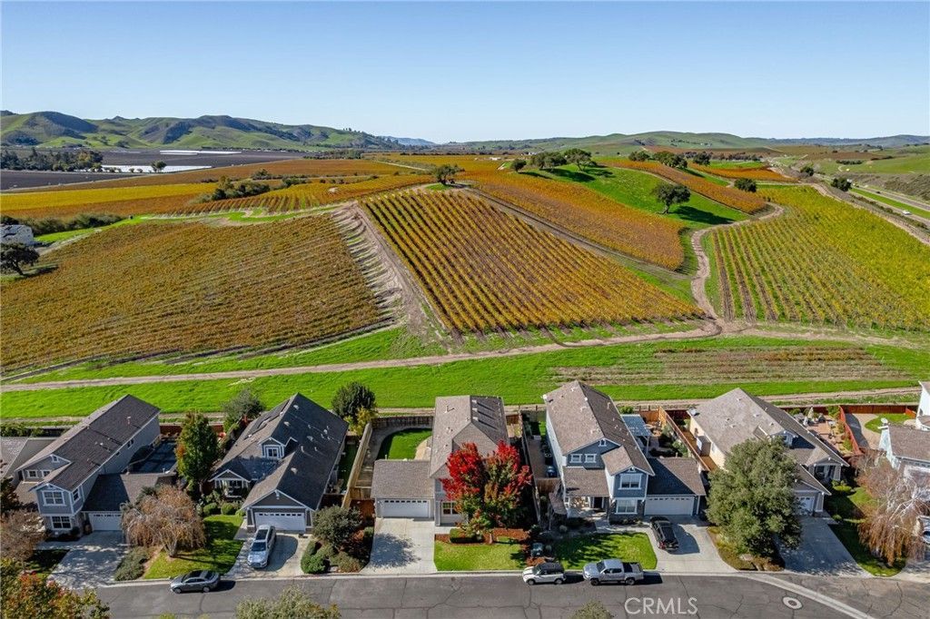 Enjoy stunning views from this beautifully updated 4BD/3BA Los Alamos home, offering the perfect blend of space, comfort, and wine country living. Fresh interior and exterior paint and new carpet in all bedrooms create a clean, move-in-ready feel. The gourmet kitchen features granite countertops, generous cabinetry, and an open layout flowing into a bright great room with cathedral ceilings, a cozy fireplace, and vineyard views. The flexible floor plan includes a convenient downstairs bedroom and bath, ideal for guests or multi-generational living. The private upstairs primary suite offers a sitting or office area, fireplace, walk-in closet, and a luxurious en-suite bath with a soaking tub and walk-in shower. Two additional bedrooms, a full bath, and a central laundry room complete the upper level. The fenced backyard with raised garden beds is perfect for entertaining, relaxing, or enjoying your own wine country oasis. Located just blocks from Bell Street's restaurants, tasting rooms, and shops, and a short drive to Los Olivos, Santa Ynez, and the Santa Barbara coastline. This is an exceptional country retreat in desirable Los Alamos.